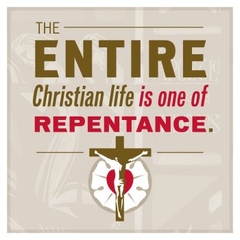 And the first among them sounded like this: “When our Lord and Master Jesus Christ said, “Repent” (Mt 4:17), He willed the entire life of believers to be one of repentance.” That simple. Repentance.